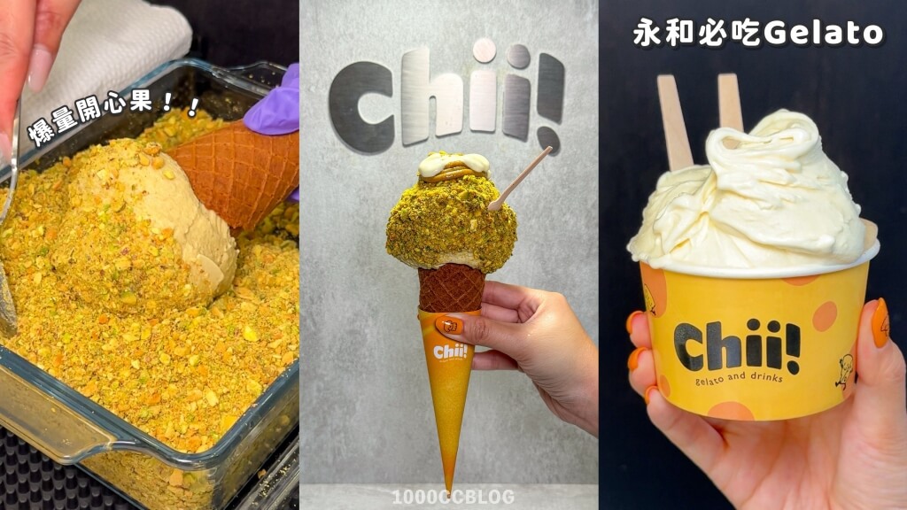 新北永和新開幕的義式冰淇淋「Chii! Gelato」,鄰近樂華夜市走路只需要一分鐘,每天都會提供5-6種口味,且不定期推出隱藏版口味,就連甜筒也都是現場製作,一球只要70元,杯裝還能免費加奶霜,開心果控必點開心果三重奏,從裡到外滿滿開心果,層次豐富冰淇淋口感綿密,愛吃Gelato千萬不要錯過。