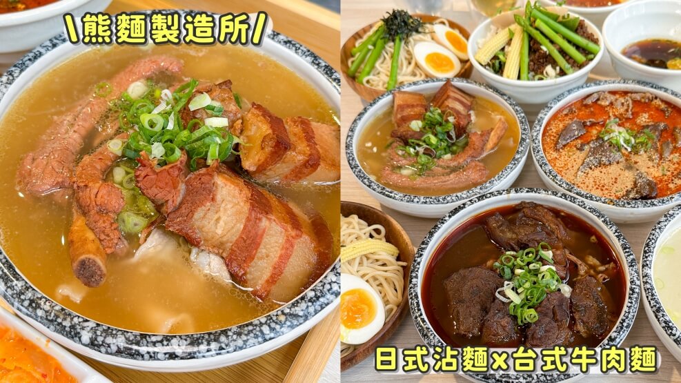 竹北美食又有新選擇啦~這家新開幕的「熊麵製造所」居然把日式沾麵跟台是牛肉麵做結合?大推必點新品三寶蒜味赤牛湯,湯頭充滿濃郁蒜香,三寶的三種牛肉都超厲害,搭配爽口的日式沾麵,這組合真的超讚!推薦大家一定要來嚐鮮看看。