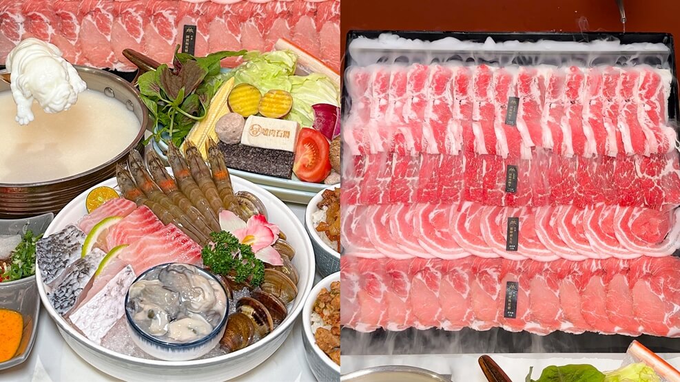 竹北火鍋「嗑肉石鍋」推薦必點浮誇又吸睛的肉瀑布,四種肉都新鮮又好吃!湯底也很有特色,居然有玄米抹茶口味?自助吧更提供上百種蔬菜、副食、飲料、甜點,通通都可以無限享用,任你吃到飽!