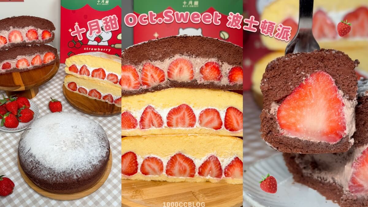 台南超人氣蛋糕店「十月甜Oct.Sweet波士頓派 」,他們的波士頓派在網路上早已超級有名,最近還推出兩款季節蛋糕,草莓可可和雪藏可可,用料非常實在,內餡塞滿滿滿的草莓,每一口都能吃到!!趕快趁草莓季還沒結束買一顆來吃吃!