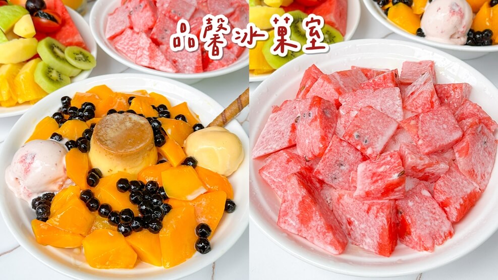 台南必吃甜點推薦「品馨冰菓室-東寧店」他們的冰品都好吃又天然!夏天一定要點隱藏版芒果雪花冰,滿滿的愛文芒果搭配珍珠、布丁、莫凡彼冰淇淋,吃起來不會過於甜膩,超過癮!西瓜牛奶冰吃完生津止渴,超消暑~