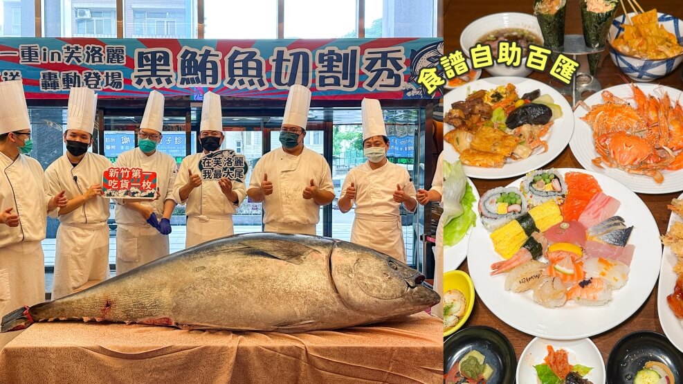 想吃到每日新鮮現捕的黑鮪魚不用大老遠跑去東港,現在只要到新竹「芙洛麗大飯店」的「食譜自助百匯」就可以吃到美味的黑鮪魚,還能欣賞這個一年一度超盛大的切割秀!你們看上面的畫面,一尾黑鮪魚大隻到後面可以站七位壯漢師傅,真是太浮誇啦~