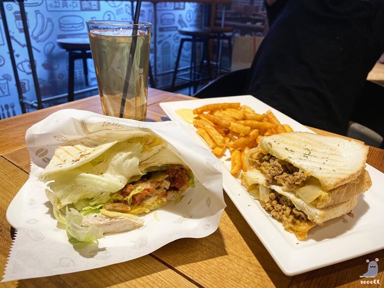 牛肉與洋蔥拌炒後鮮美軟嫩,料理得很棒,配上濃郁的起士超完美,整體調味剛剛好不會太鹹,口感濕潤不乾,拿起來享用時還會滴肉汁呢!只可惜這價位稍嫌貴了一些,份量不足再多一些會更好,怕吃不飽要加點套餐才夠呦。