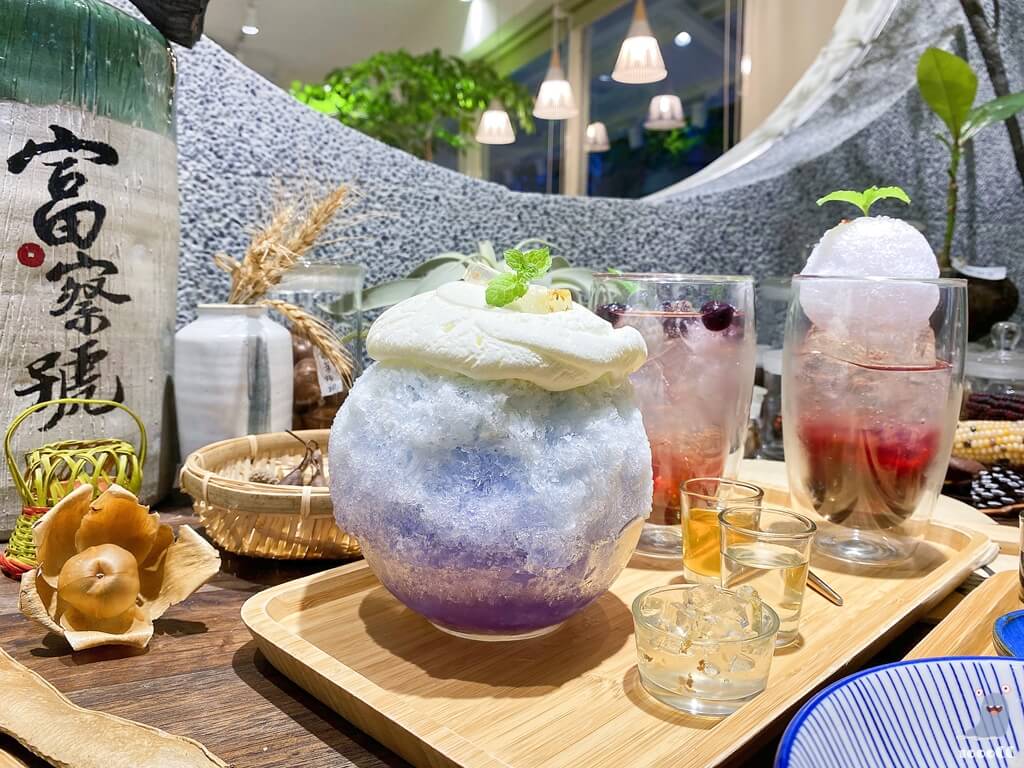 紫藍色的蝶豆花冰品那色調實在是夢幻極了!外型與品名花開了相呼應,像極了一朵盛開的繡球花般美麗,要是現在飛來幾隻蝴蝶在上頭盤旋,我也不覺得奇怪。話說蝶豆花益處多多,富含比一般植物高出10倍的花青素,可以保護雙眼、控制血糖、抗氧化、增加免疫系統和抗癌呢🤙🏻。