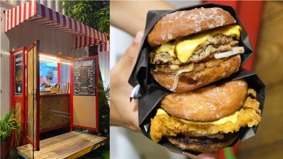 紅白相間的貨櫃店面嗅出不少美式氣息,一旁有簡單的戶外用餐區,而那台腳踏車則是老闆販售甜甜圈漢堡的起點。